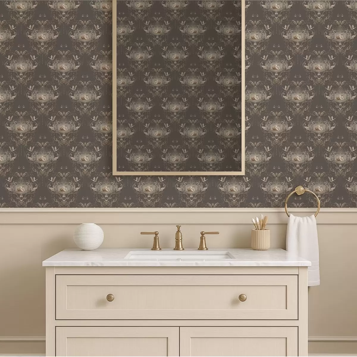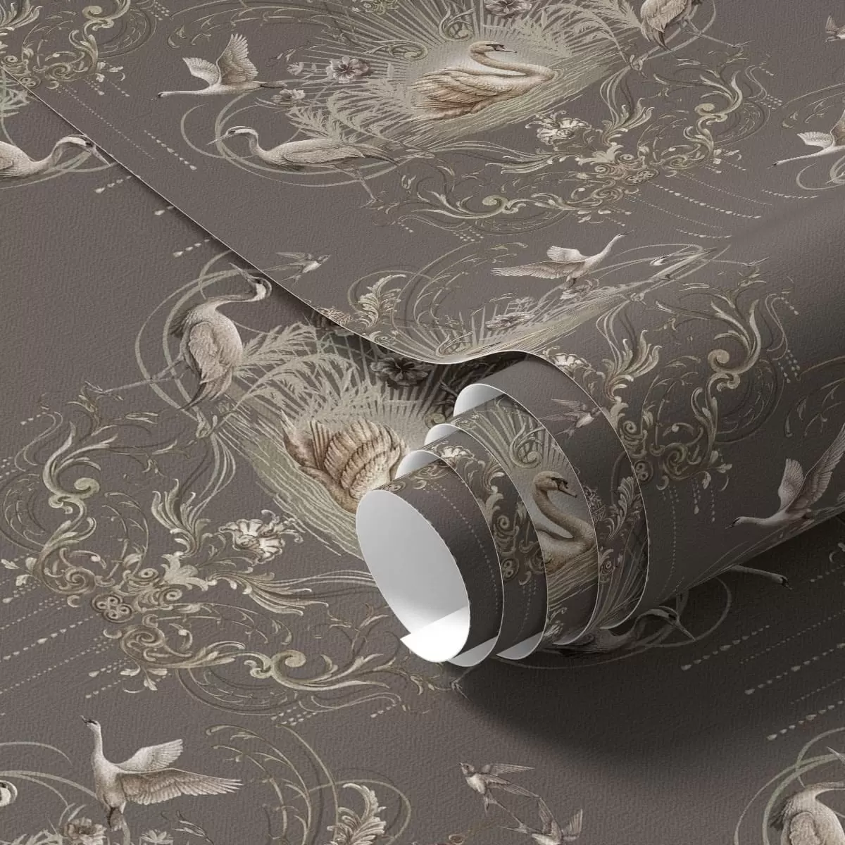 Papel de parede Enfeite com cisnes e pássaros em estilo clássico Nr. a01161