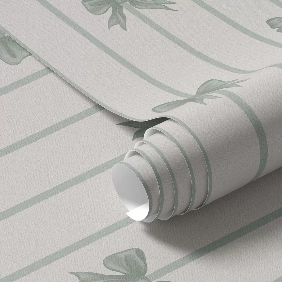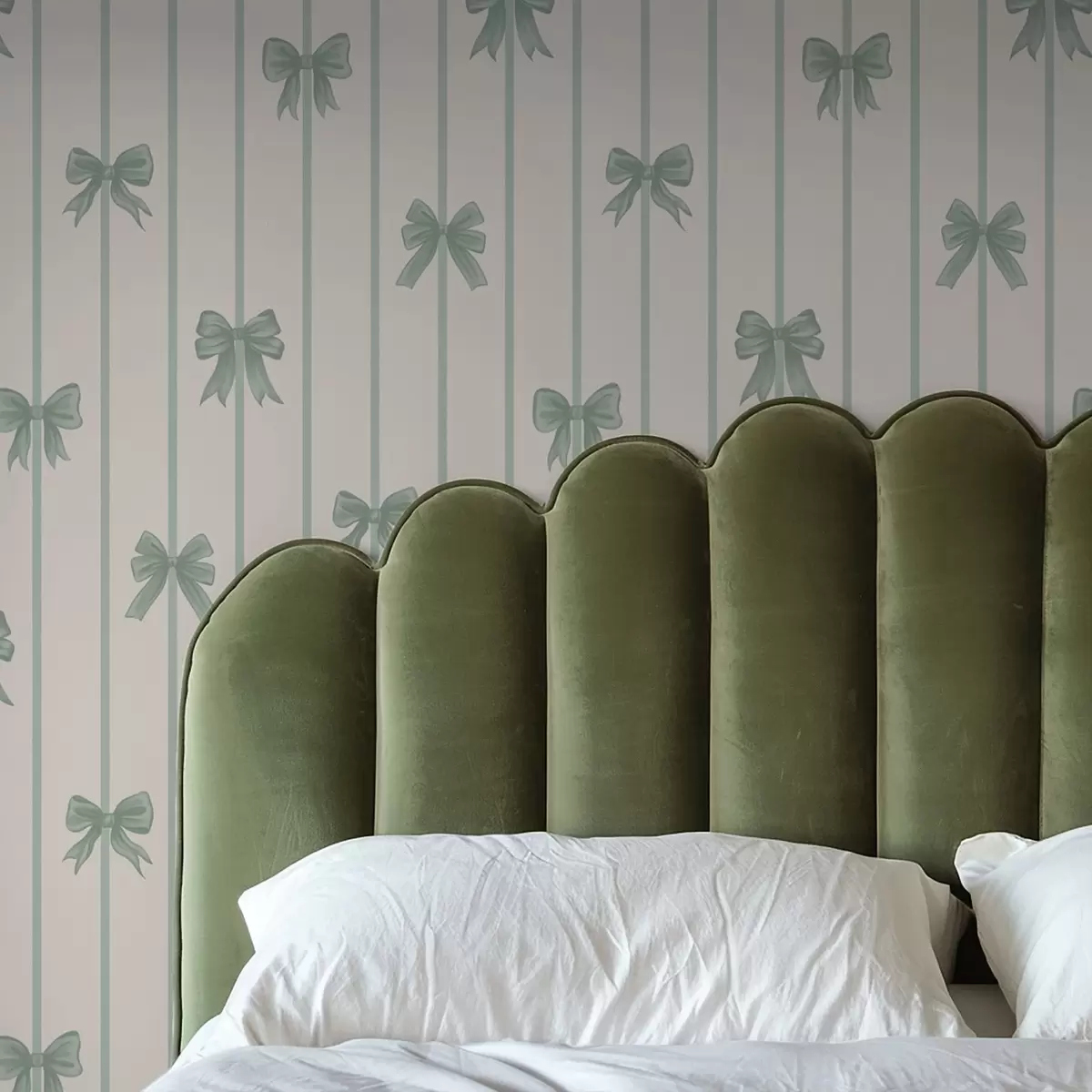 Papel de parede Laços verdes sobre fundo bege listrado Nr. a01162v1