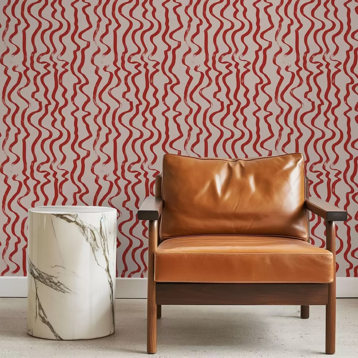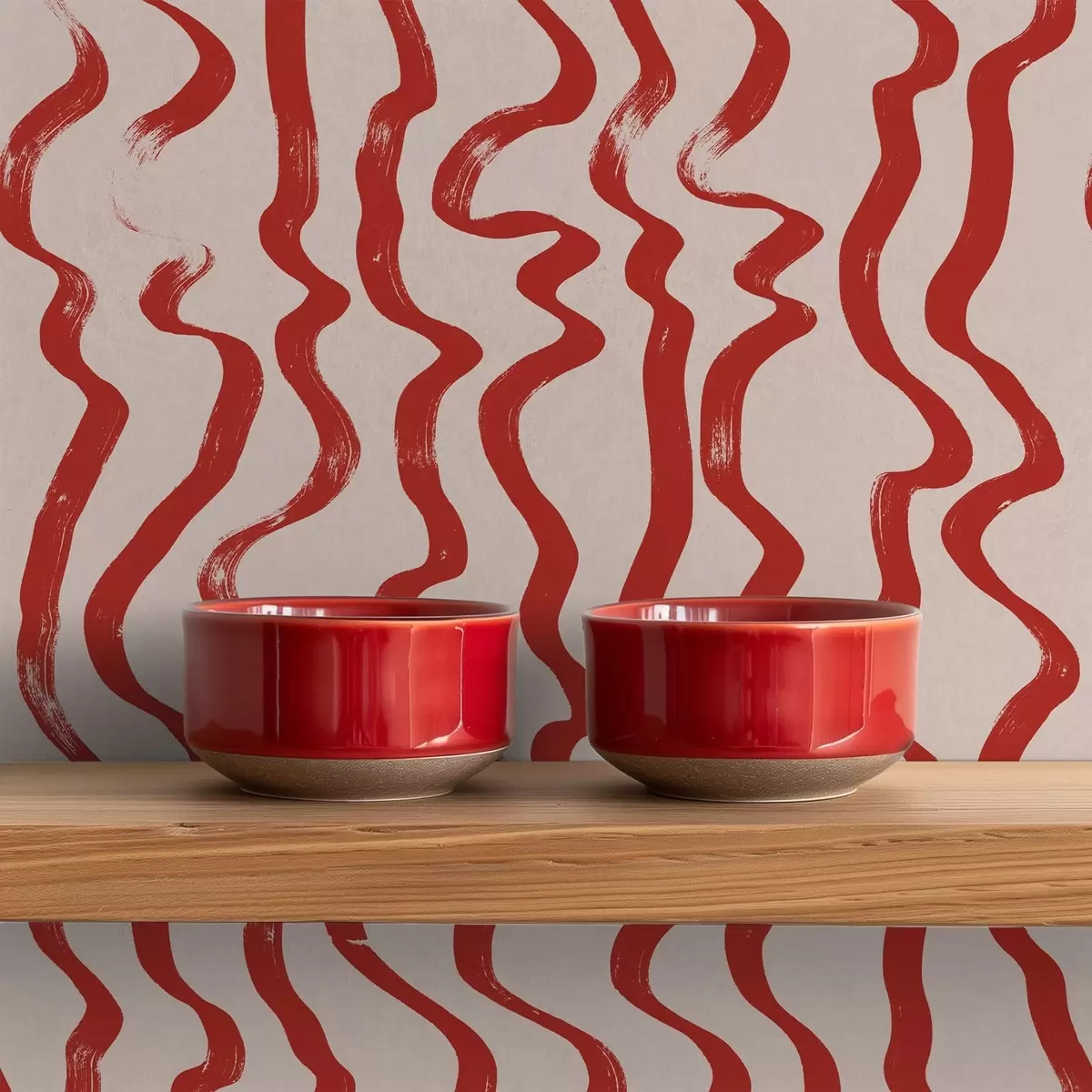 Papel de parede Linhas vermelhas onduladas sobre fundo claro Nr. a01168