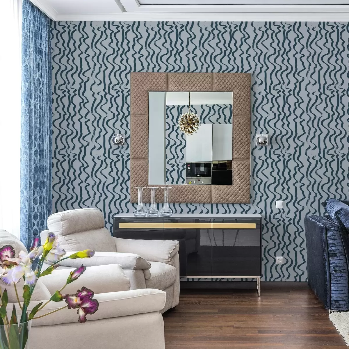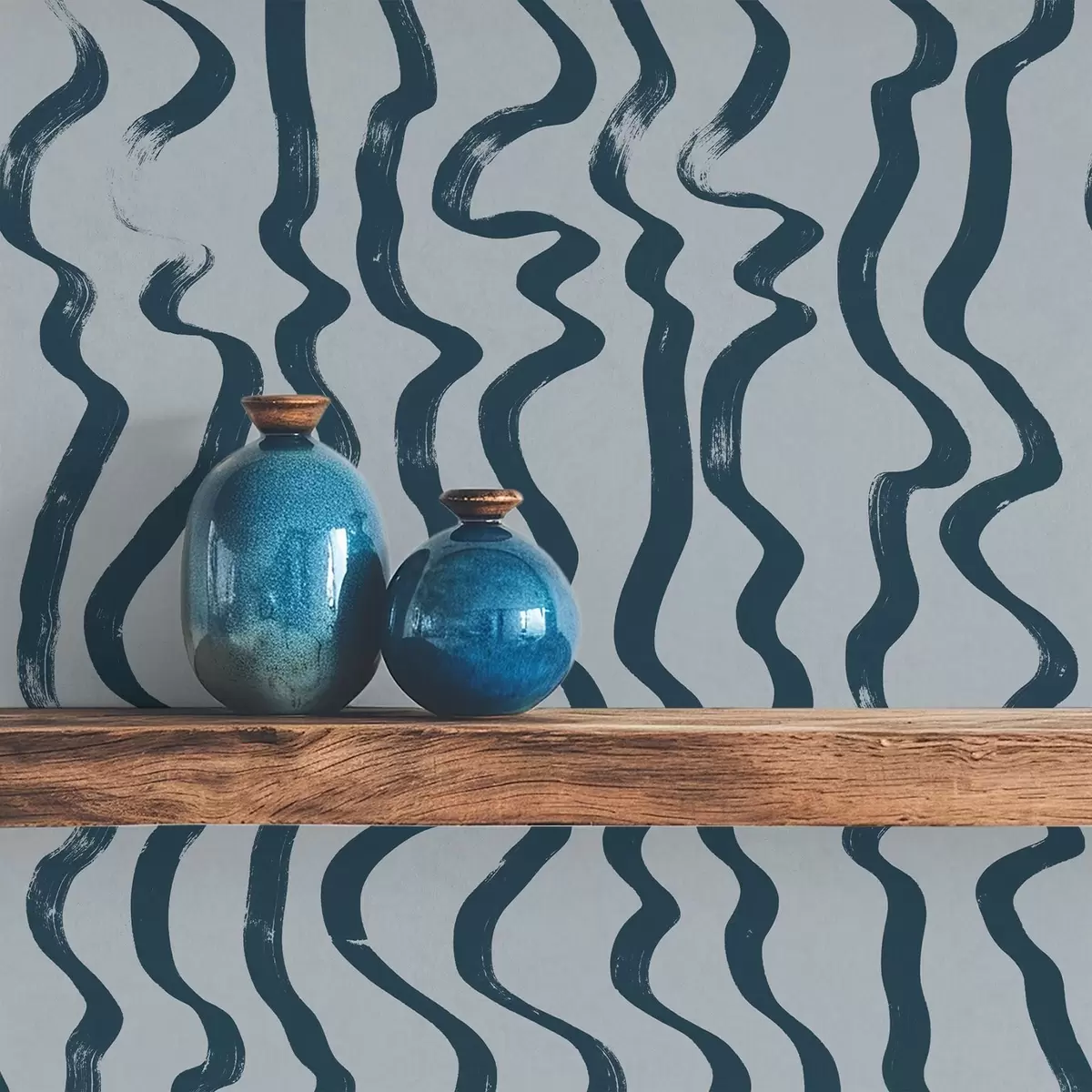 Papel de parede Linhas onduladas escuras sobre fundo azul Nr. a01168v1
