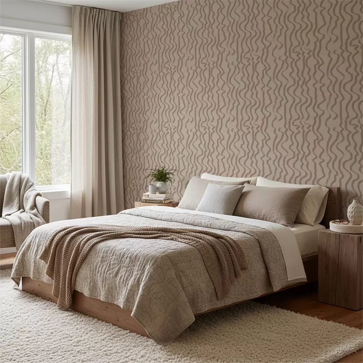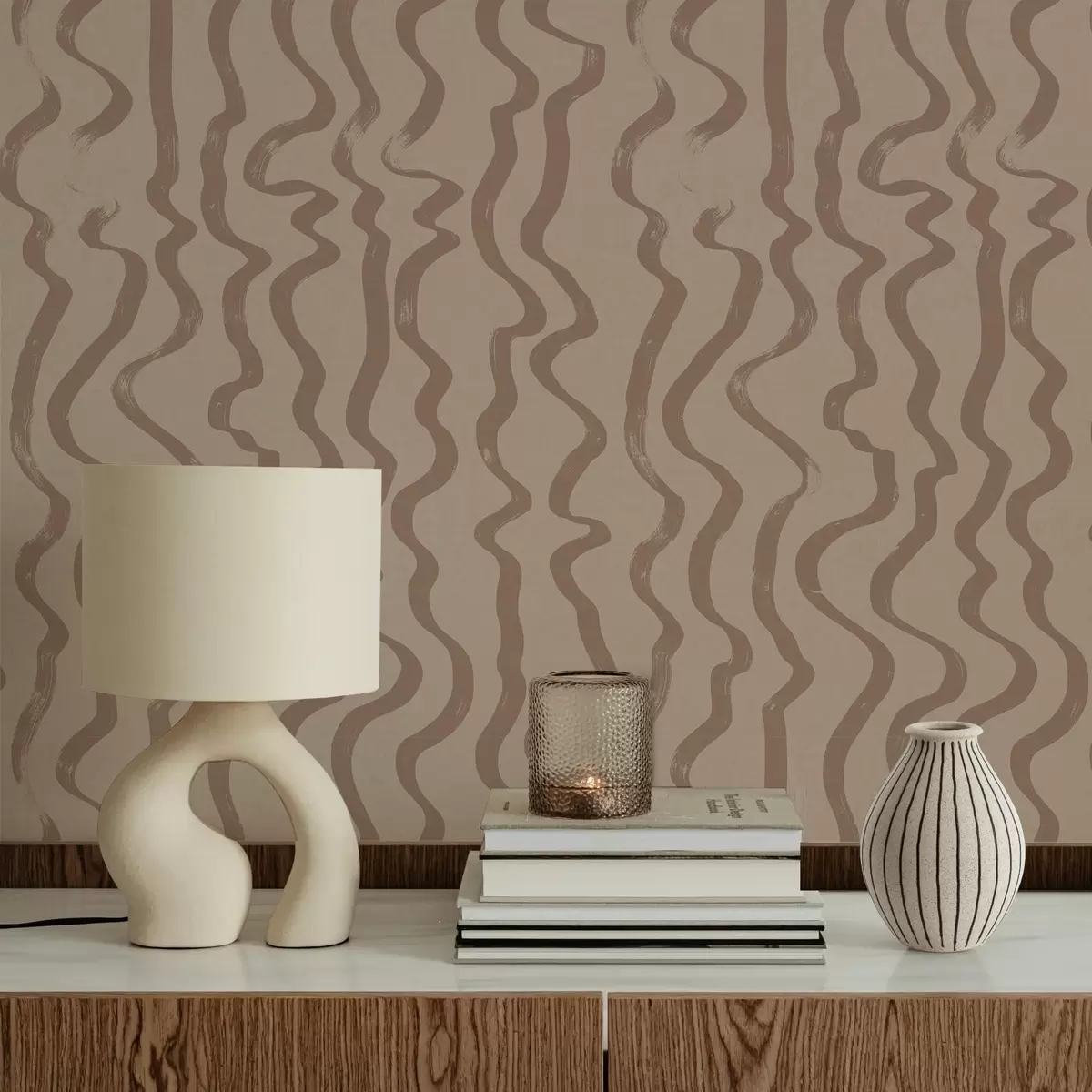 Papel de parede Linhas onduladas bege sobre fundo claro Nr. a01168v2