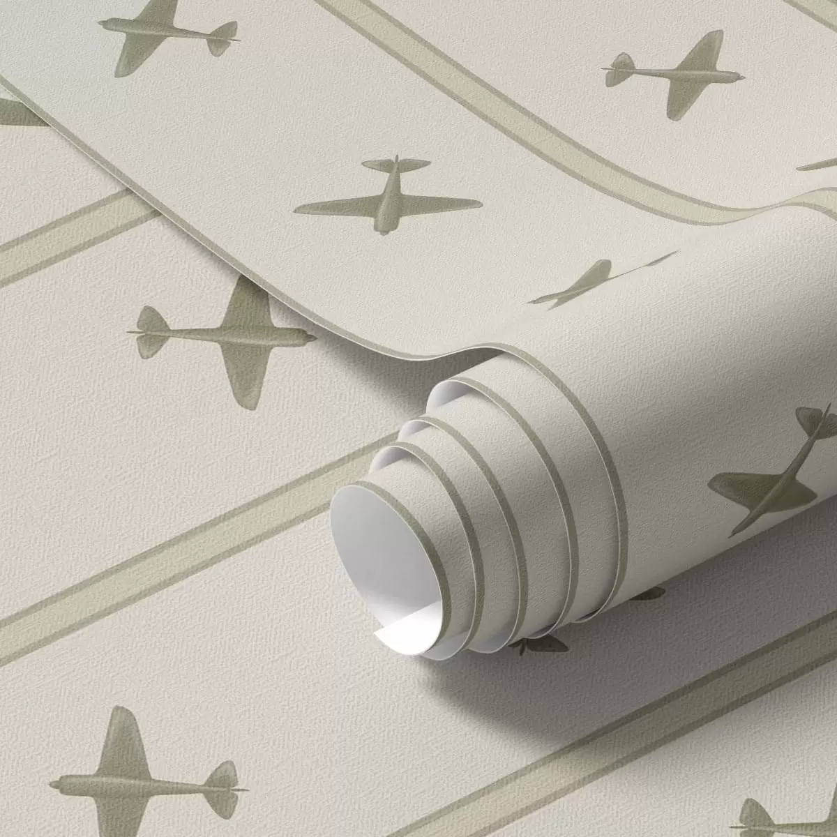 Papel de parede Aviões com padrão listrado em tons de verde-oliva Nr. a01170v2