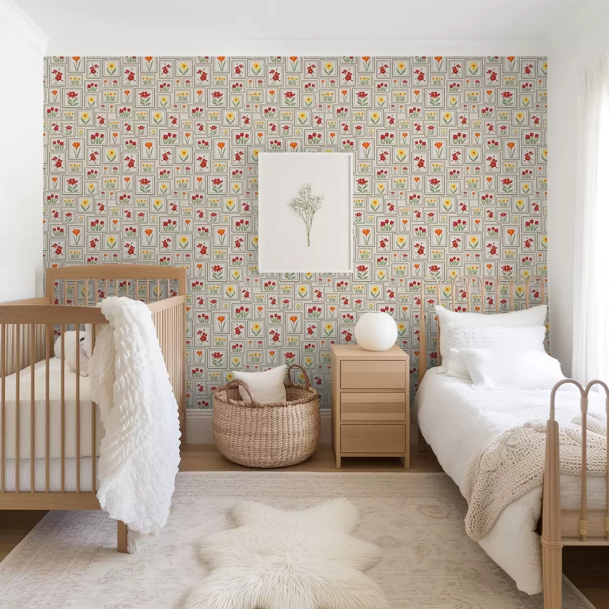Papel de parede Ilustrações florais emolduradas em tons quentes Nr. a01173