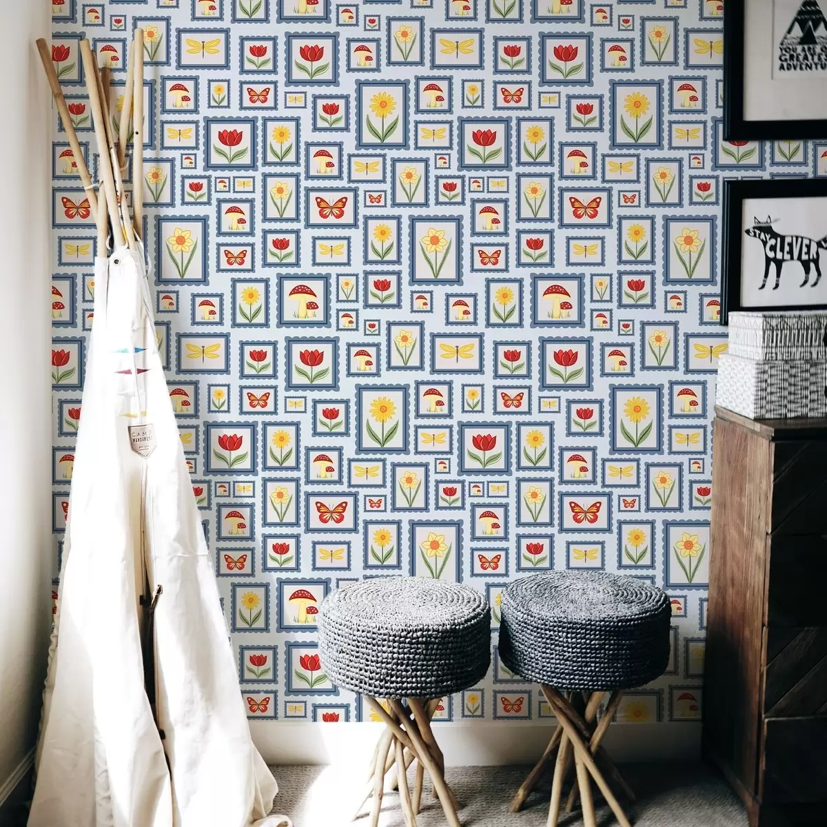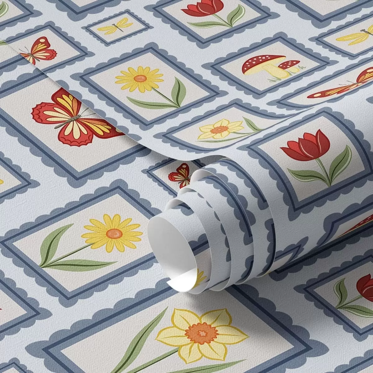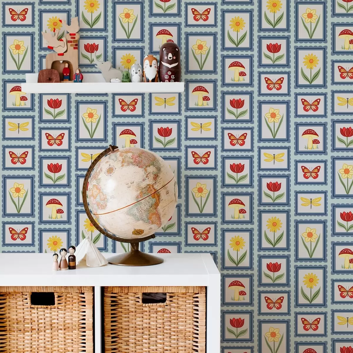 Papel de parede Ilustrações emolduradas sobre fundo azul Nr. a01176