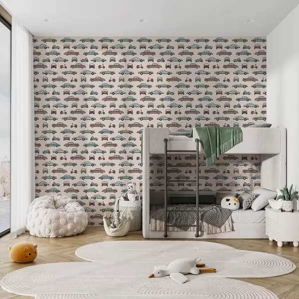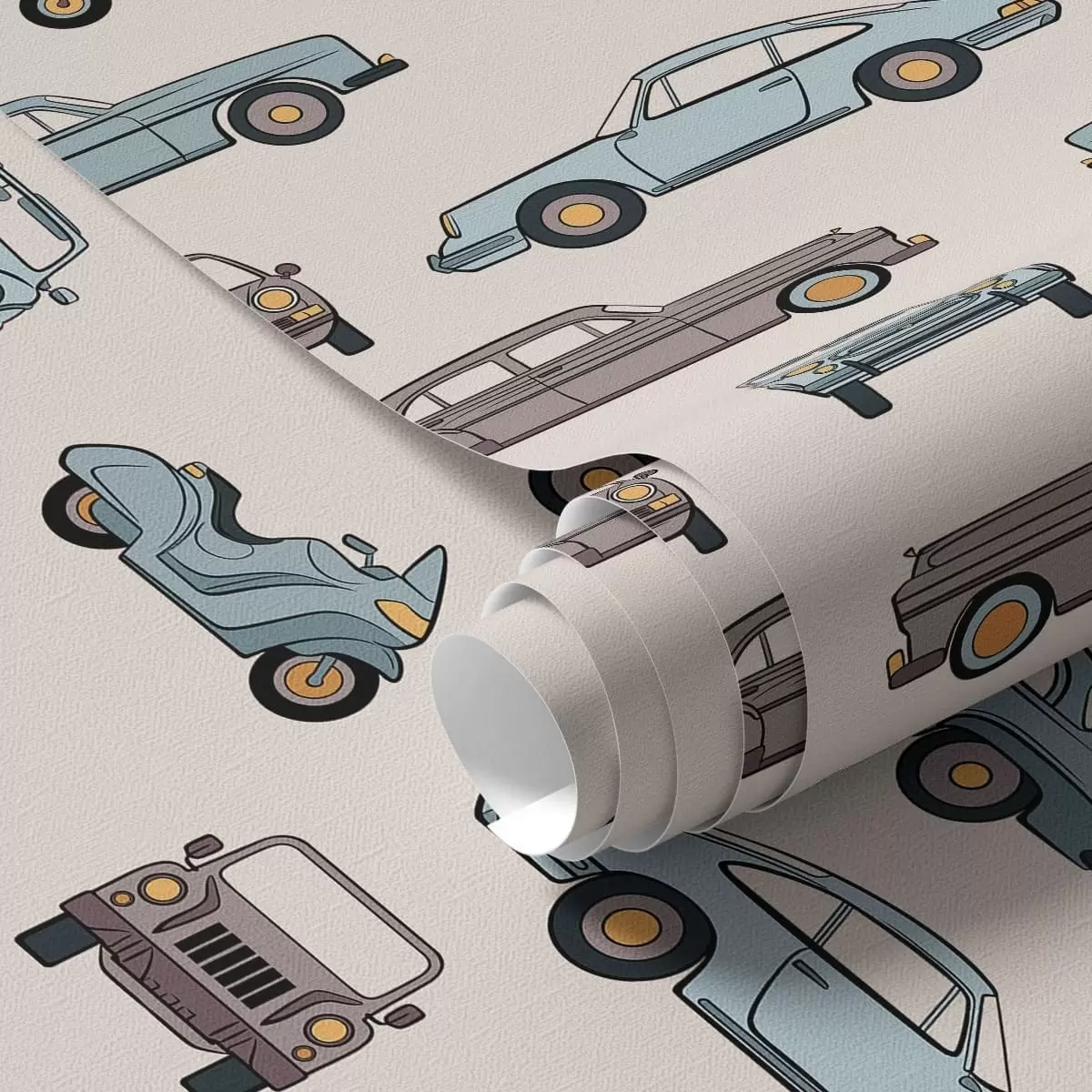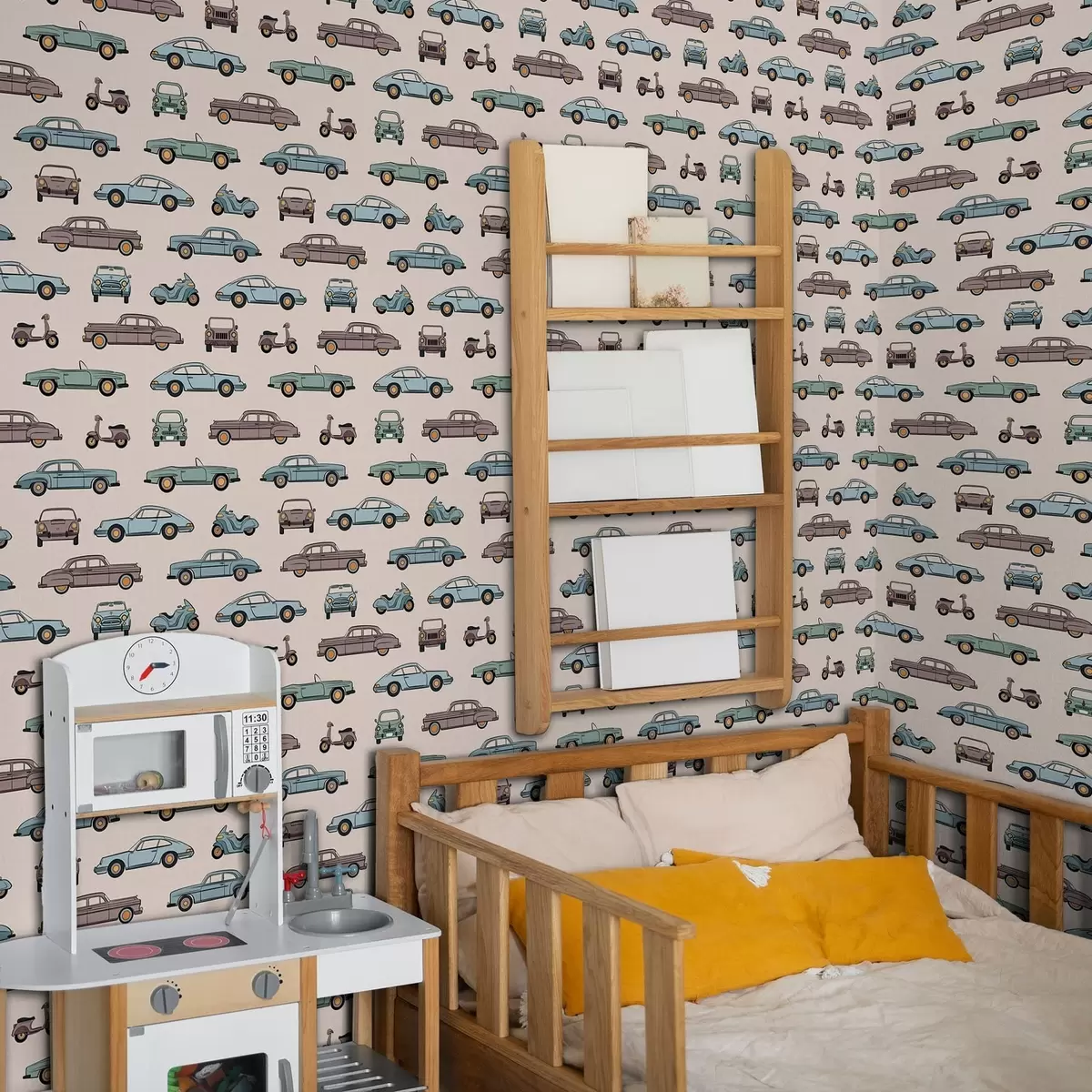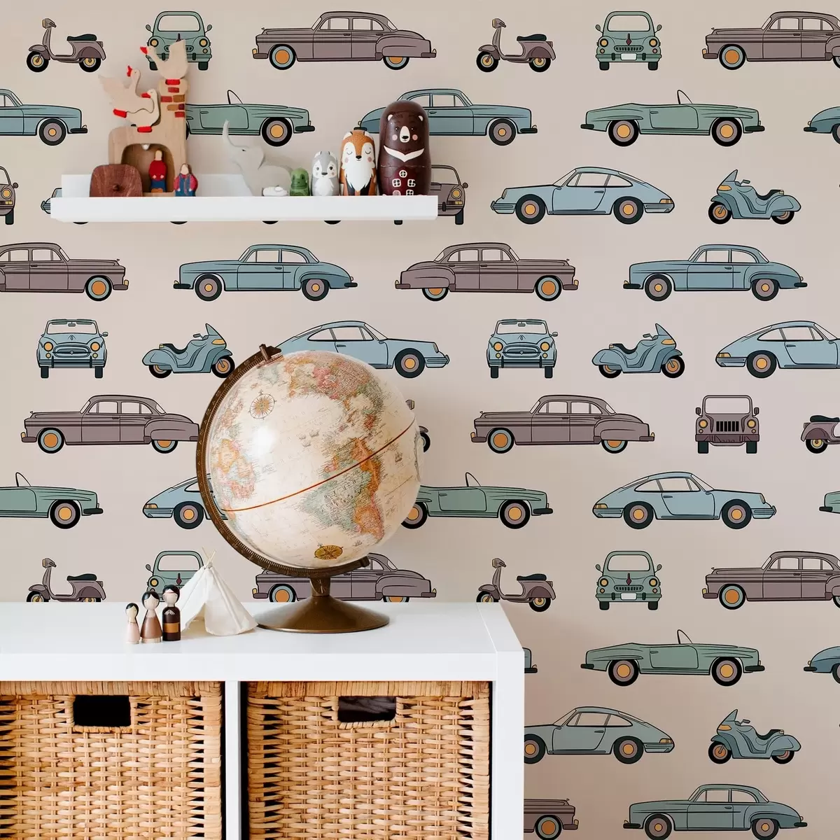 Papel de parede Carros e scooters retrô sobre fundo bege Nr. a01178v1