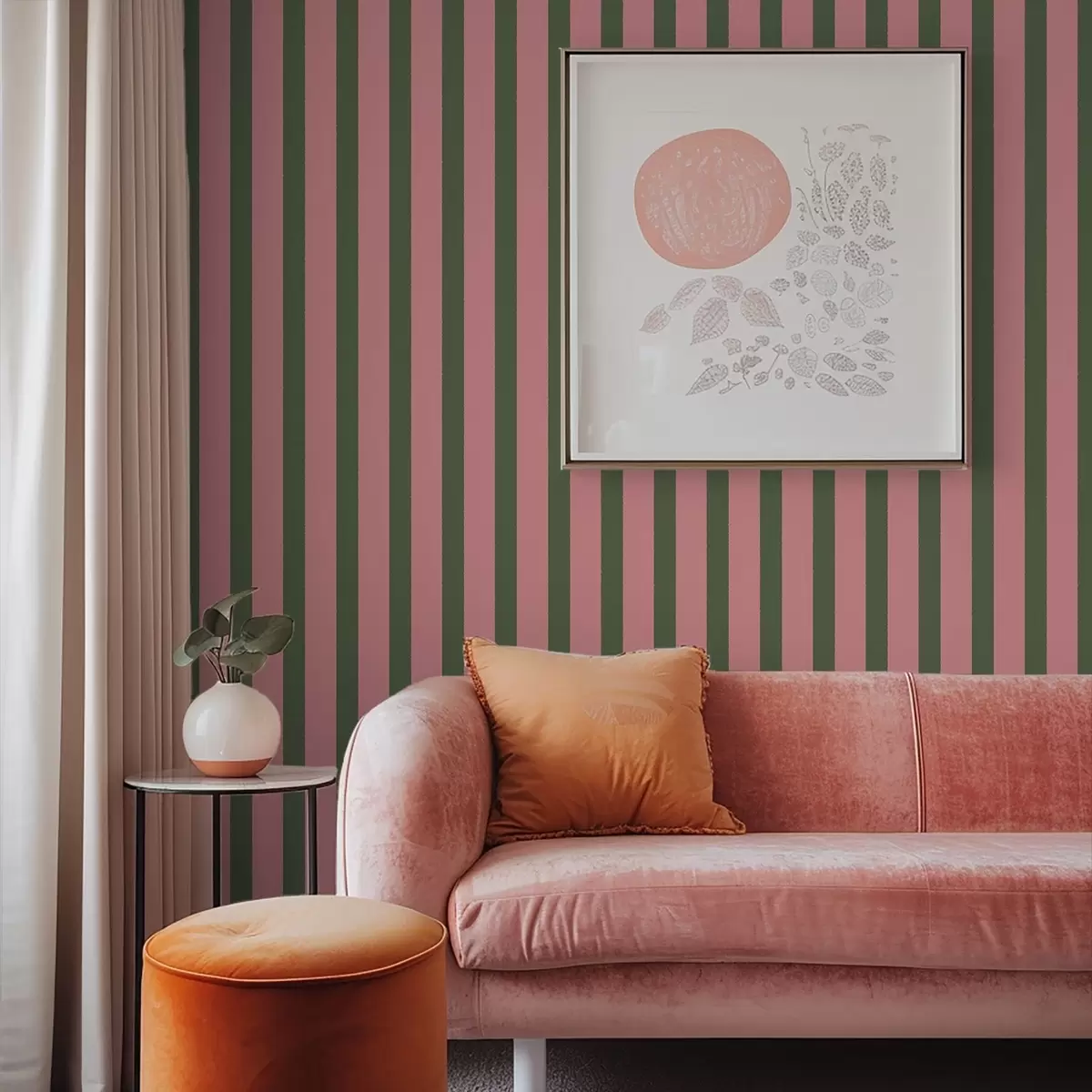 Papel de parede Listras verticais rosa e verdes Nr. a01180v2