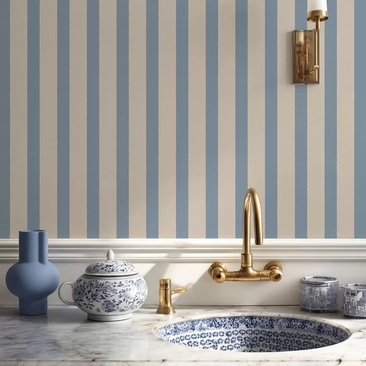 Papel de parede Listras verticais em bege e azul claro Nr. a01180v3