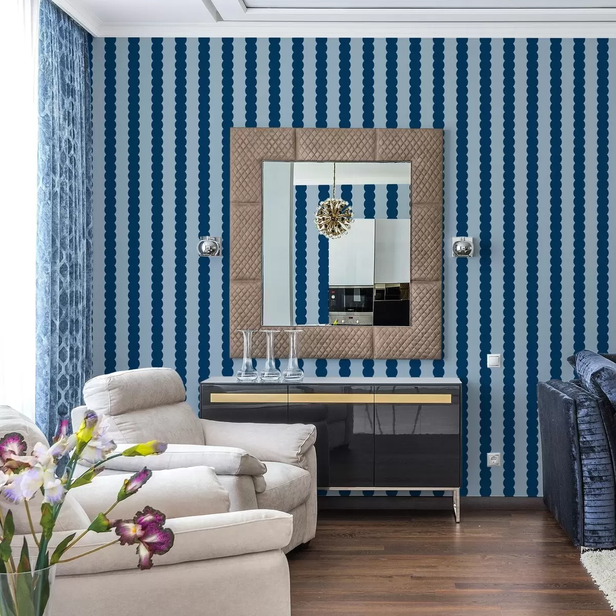 Papel de parede Listras onduladas em azul escuro no estilo minimalista Nr. a01182v3