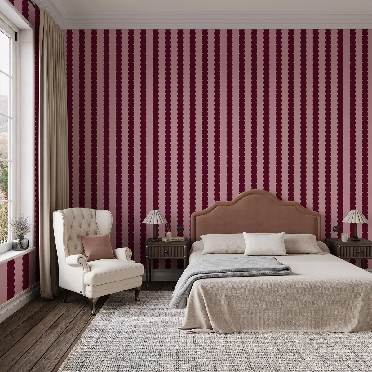 Papel de parede Listras onduladas em tom bordô, no estilo minimalista Nr. a01182v5